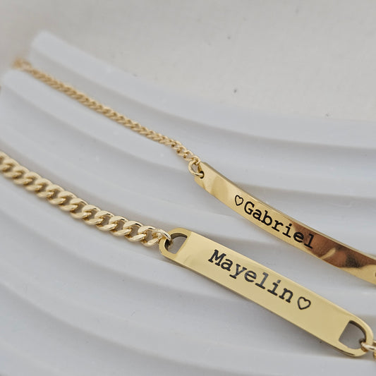 Couple Personalized sentimental bracelet, bridesmaid bracelet, baby bracelet, bar with name and symbol, personalized minimalist bracelet
