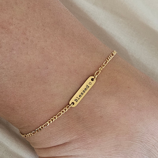 New York Personalized Aklet, Figaro Custom Anklet, Bar Name Anklet Bracelet