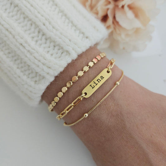 Custom Mini Name Bar Bracelet Set, Dainty Bracelet Gift Set, 18k Gold Filled Layering Bracelet